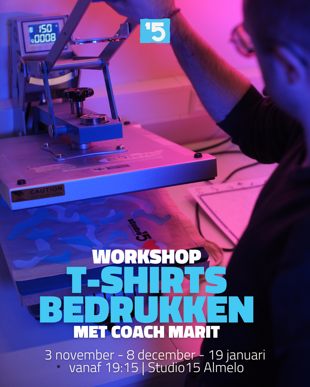 Altijd al willen leren hoe je een T-shirt of tas kunt bedrukken? Kom naar Studio15 en leer het onder begeleiding van onze coach Marit!